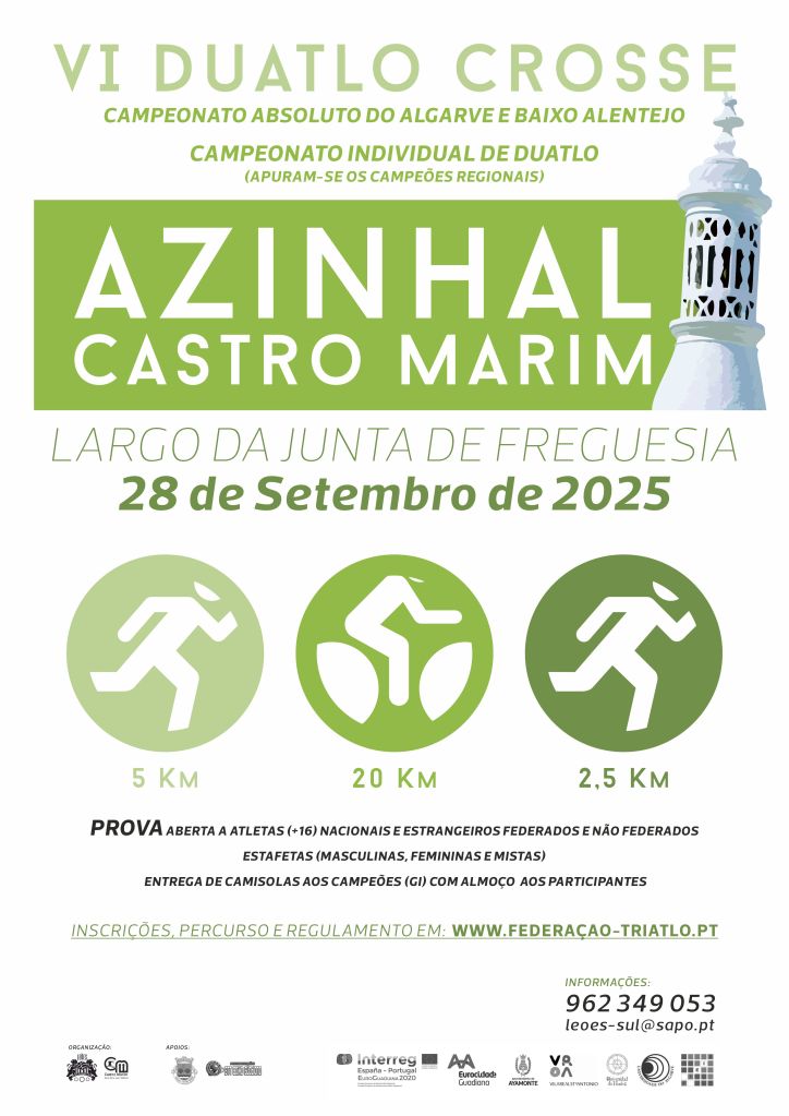 A 6ª edição do Duatlo Cross do Azinhal realiza-se, Domingo, dia 28 de setembro de 2025, pelas 9.45h, uma vez mais com a marca do GDRC Leões do Sul FC. A prova coincide com o Mercado mensal do Azinhal, mais um motivo de atração ao Azinhal.